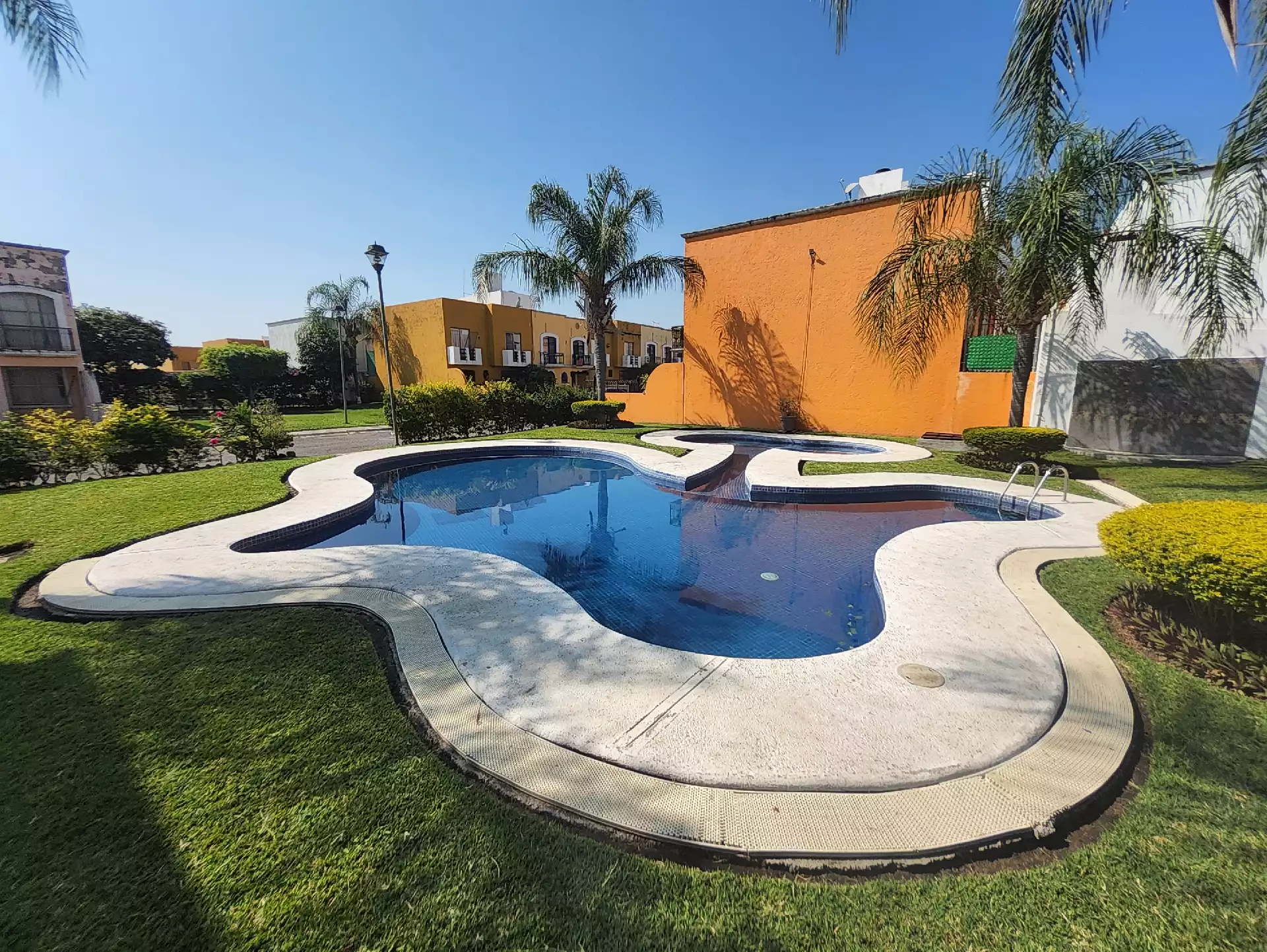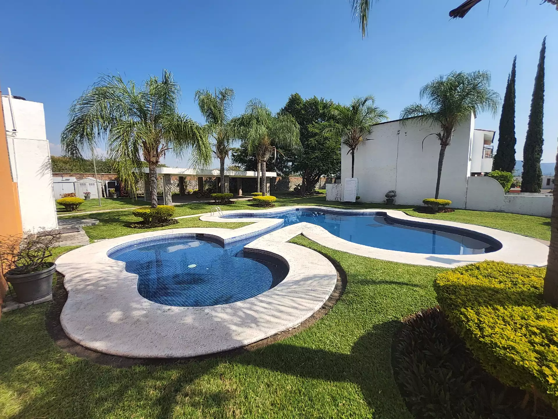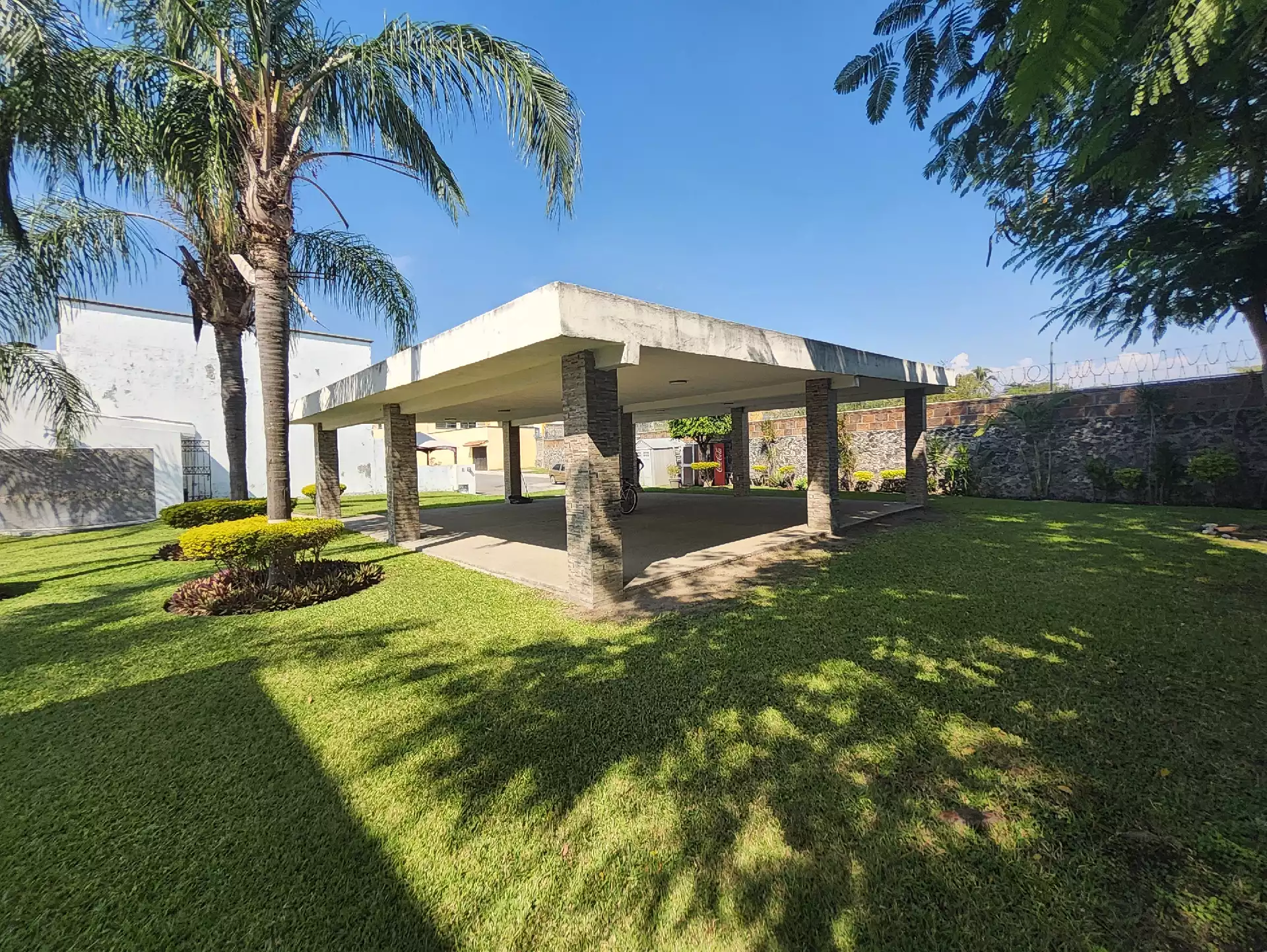 La privada ofrece alberca con palapa, baños, regaderas, servicio de recolección de basura, cuidado del jardín y vigilancia permanente.