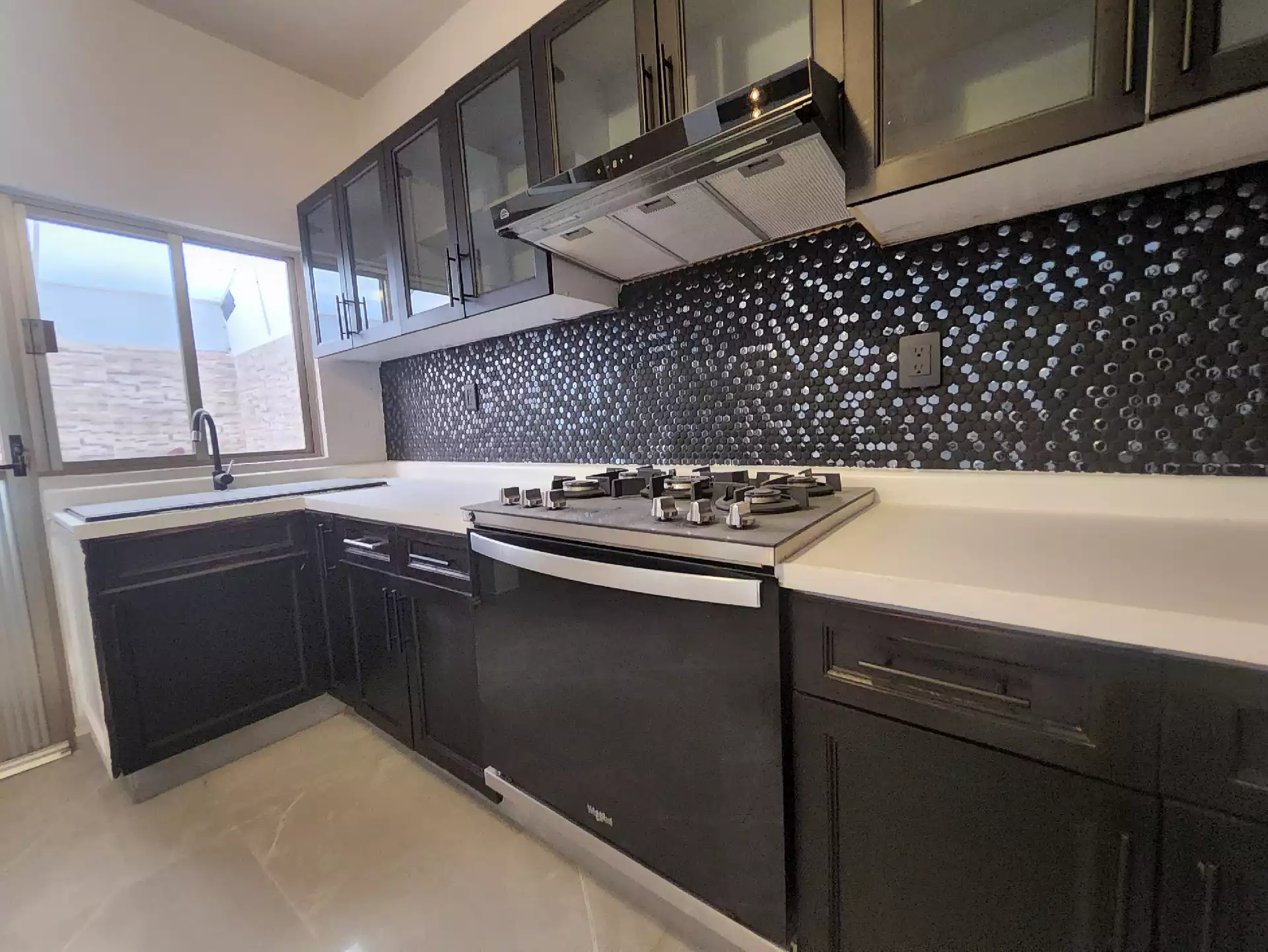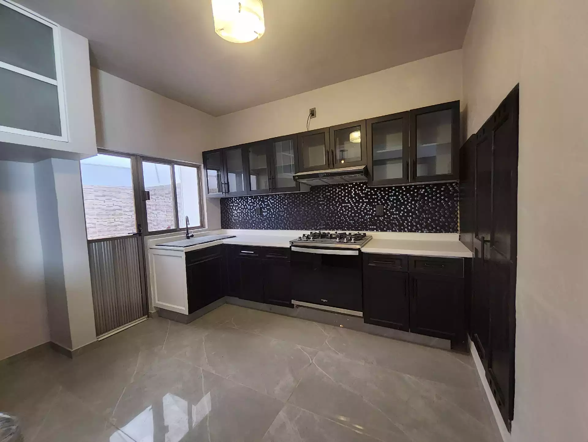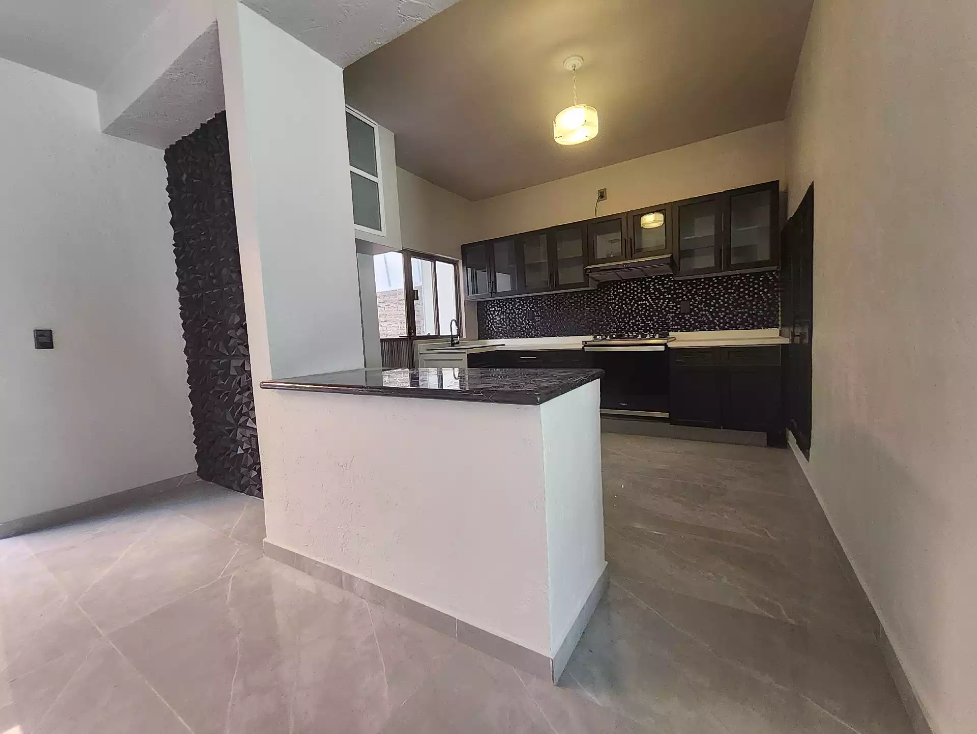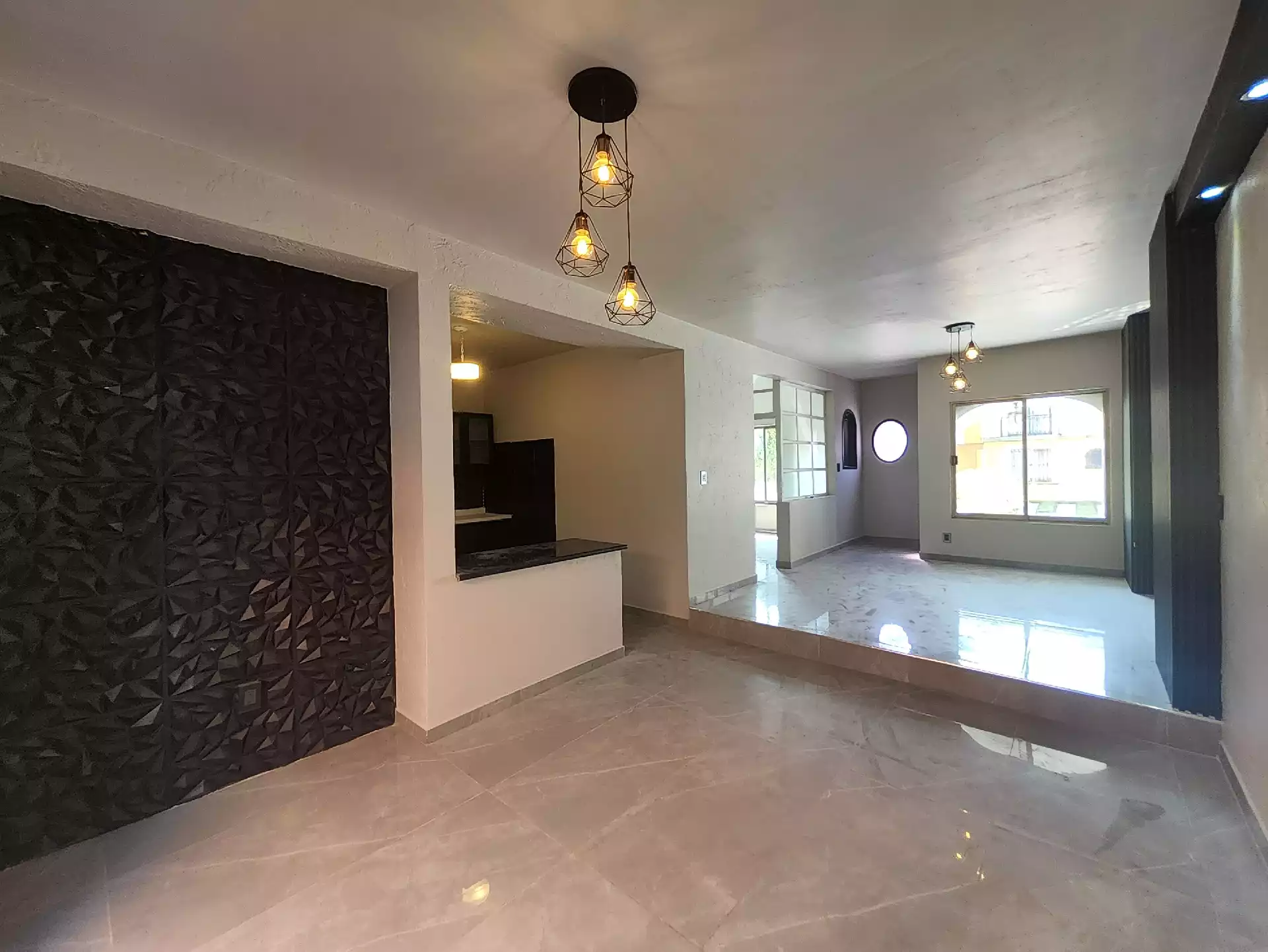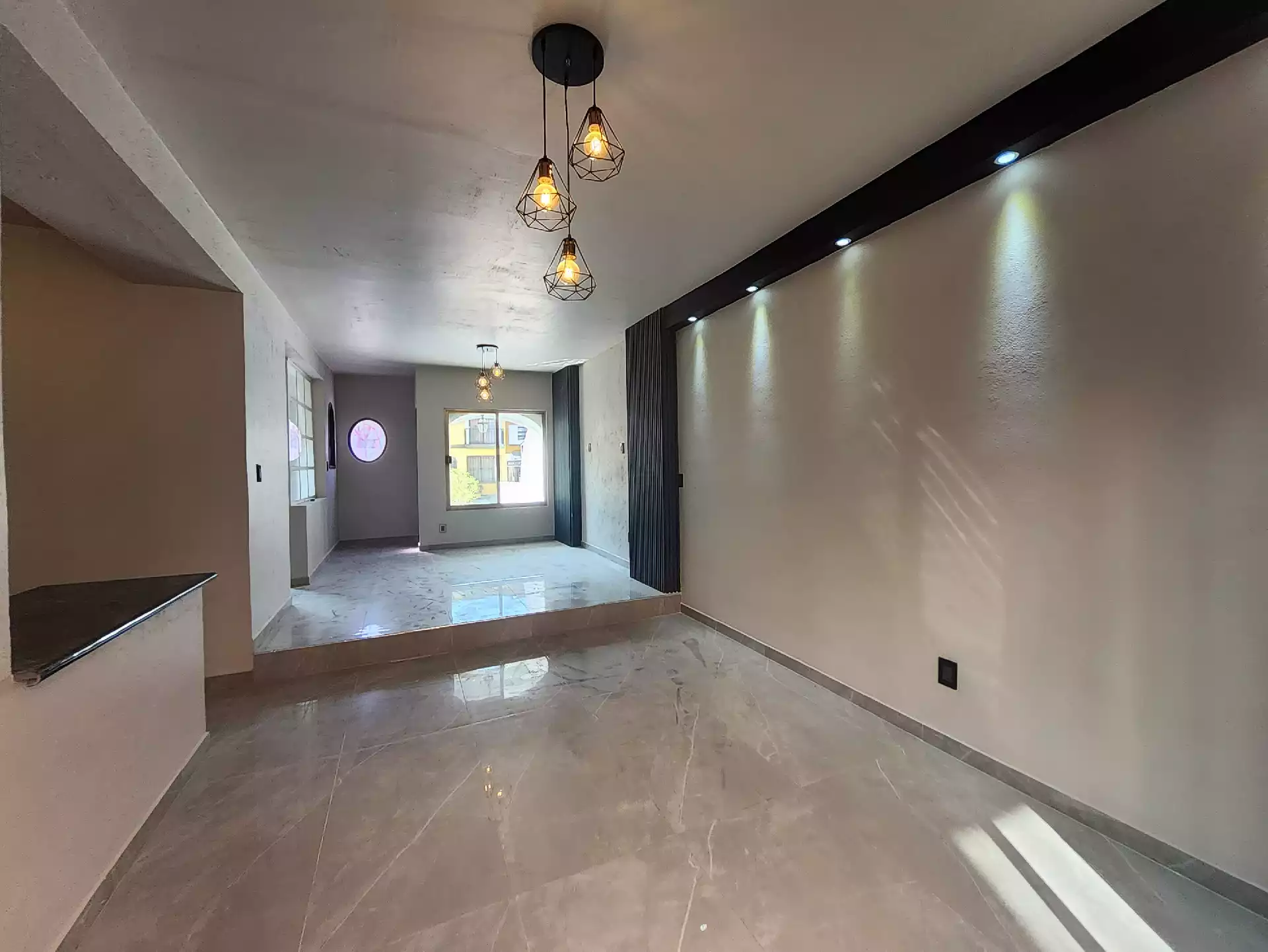 En la planta baja se encuentra una cocina integral completamente nueva, un área de despensa con puertas debajo de la escalera y un patio trasero con lavadero, boiler de paso cerrado y una alacena ideal para guardar artículos de limpieza. La sala y el comedor se encuentran a desnivel, con pisos de porcelanato nuevo tipo mármol que le dan un toque moderno. En este nivel también hay un cuarto de estudio con puerta y una cómoda bodega bajo las escaleras, también con porcelanato.