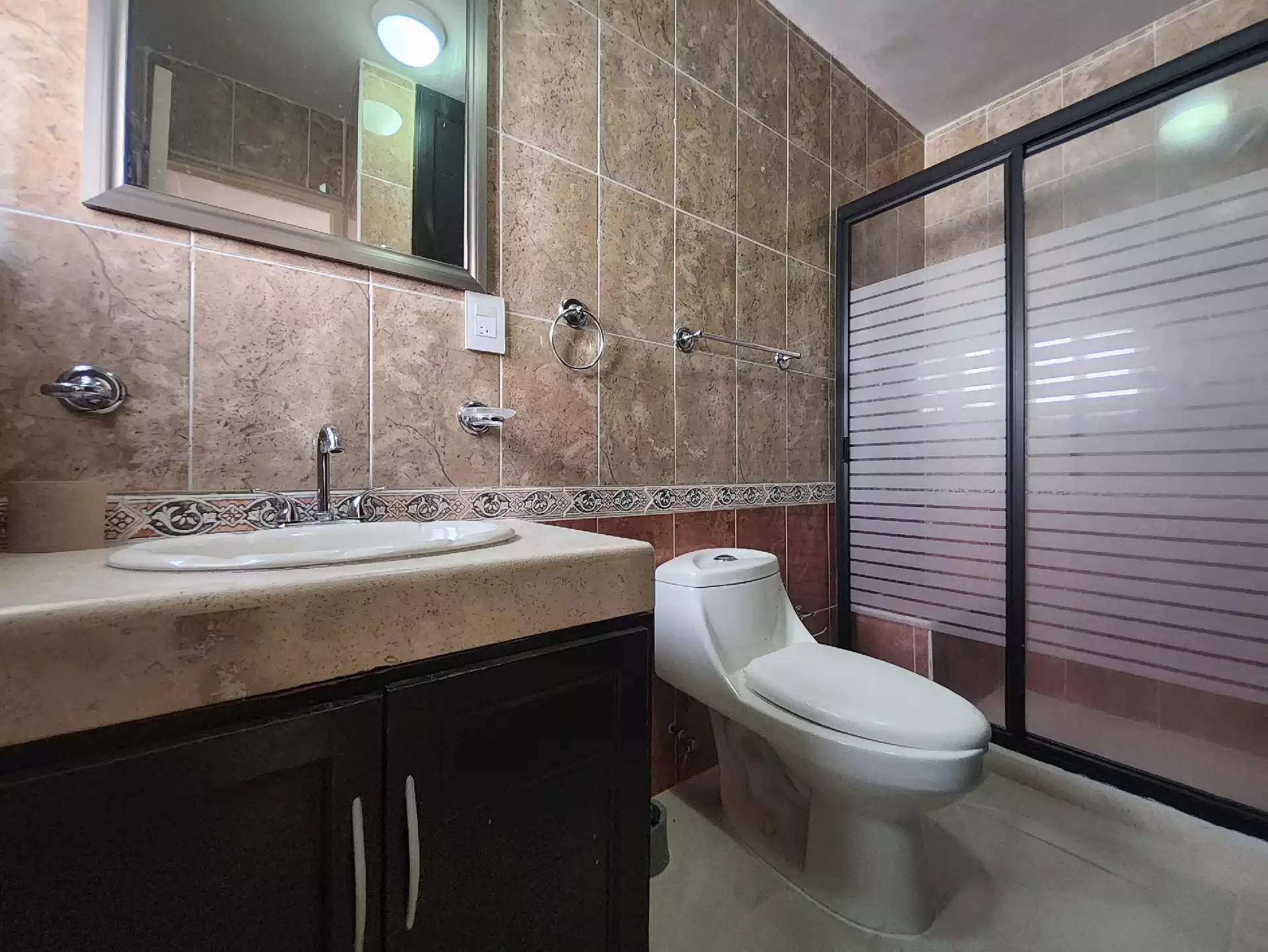 En la planta alta se ubican tres recámaras. La recámara principal cuenta con vestidor, baño remodelado con taza suspendida moderna, paredes con acabados en lambrín de madera y mármol, además de una alacena y cajones para almacenamiento, y ventilador con control. La recámara secundaria, ubicada al frente, tiene un balcón, clóset de piso a techo y ventilador con botón de contacto. La tercera recámara cuenta con baño propio, y adicionalmente hay un baño completo en el pasillo para servicio de la recámara secundaria.